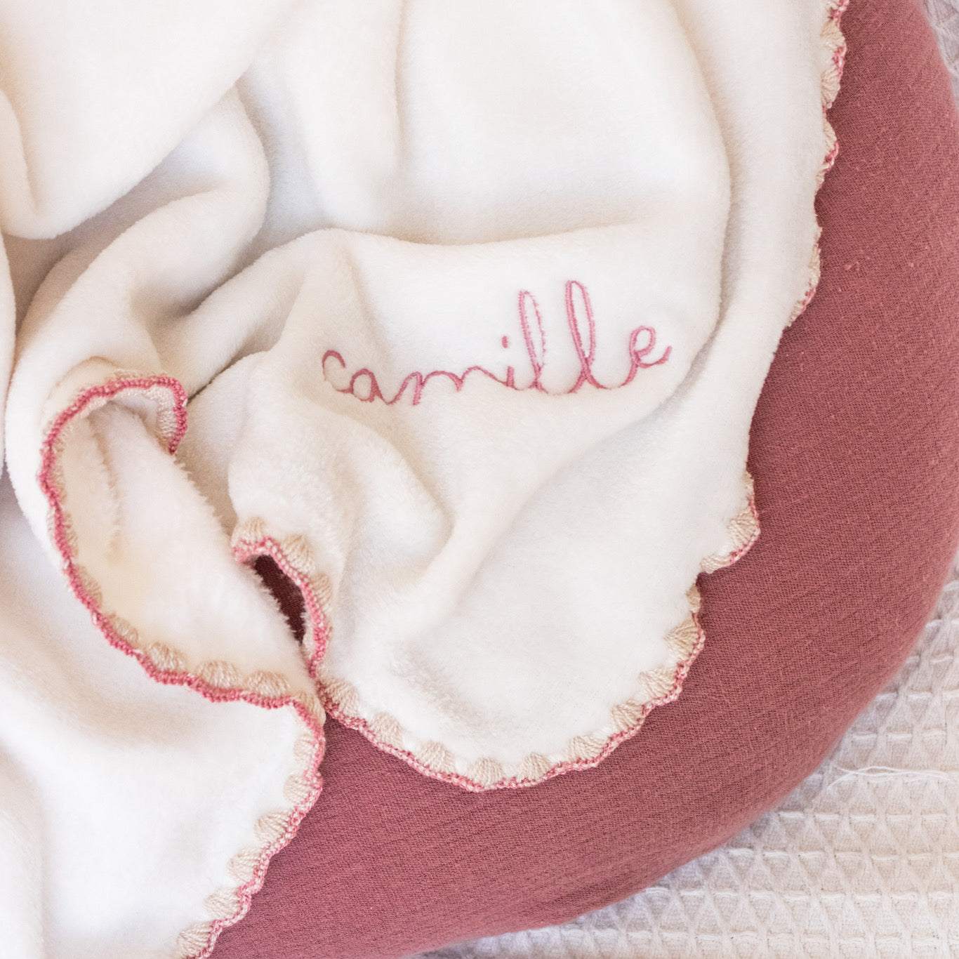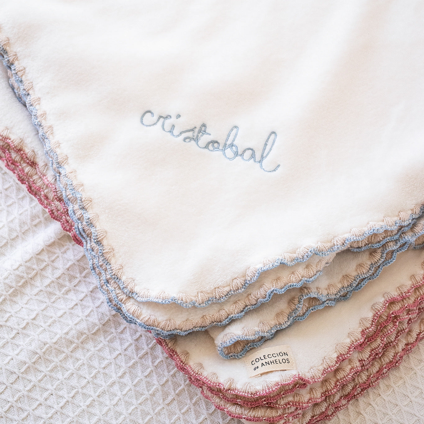 Esta cobija es la perfecta combinación de calidez y suavidad. Su tamaño grande de 100 X 150 cm envolverá a tu bebé en una sensación de confort y comodidad. Disponible en tela tono marfil, con el detalle de la orilla en 4 tonalidades: beige con rosa, beige con azul, beige con borgoña, y beige con marfil.