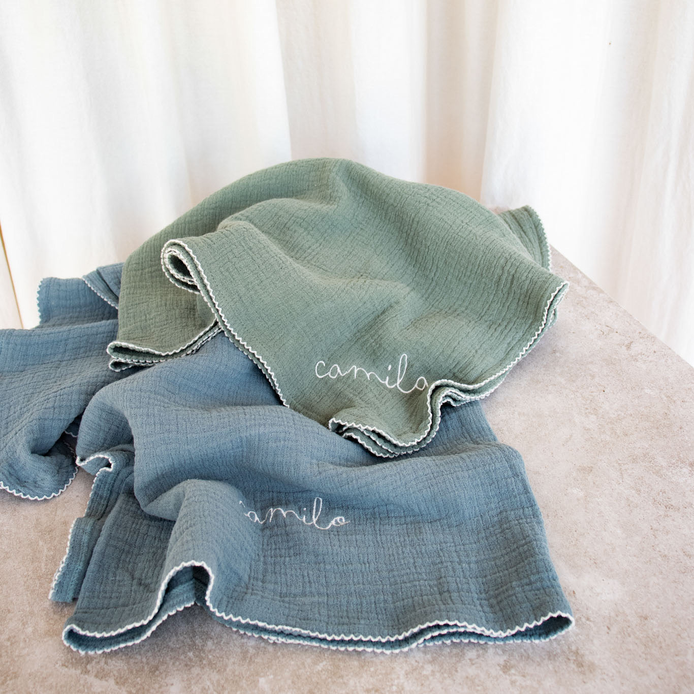 La muselina es el abrazo suave que tu bebé necesita en los días cálidos. Confeccionada en 100% algodón, es fresca y transpirable. Disponible en tamaño extragrande (120 x 130 cm, perfecta también como sábana de cuna) o estándar (90 x 100 cm). Este textil está teñido a base de un reactivo que garantiza durabilidad en su tonalidad, además está previamente lavado y suavizado, lo cual asegura que no cambiará su textura o tamaño.
